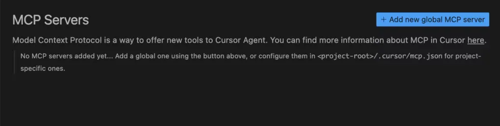 For project-specific tools, create a .cursor/mcp.json file in your project directory. This makes MCP servers available only within that specific project (perfect for database connections or project-specific APIs). For tools you want across all projects, add them in your settings.
